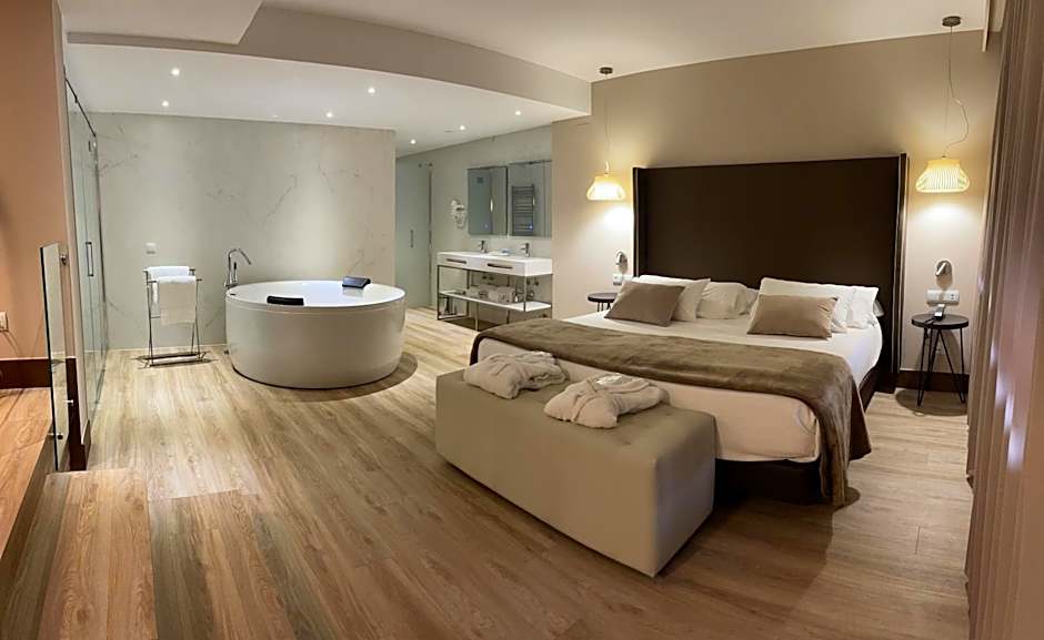This 2-story room features a round spa bath and a double thermostatic shower tray.